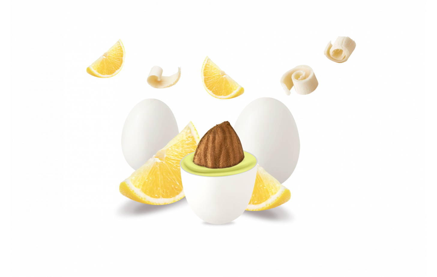 Mandorla tostata ricoperta da cioccolato bianco al gusto di limone e da un sottile strato di zucchero.